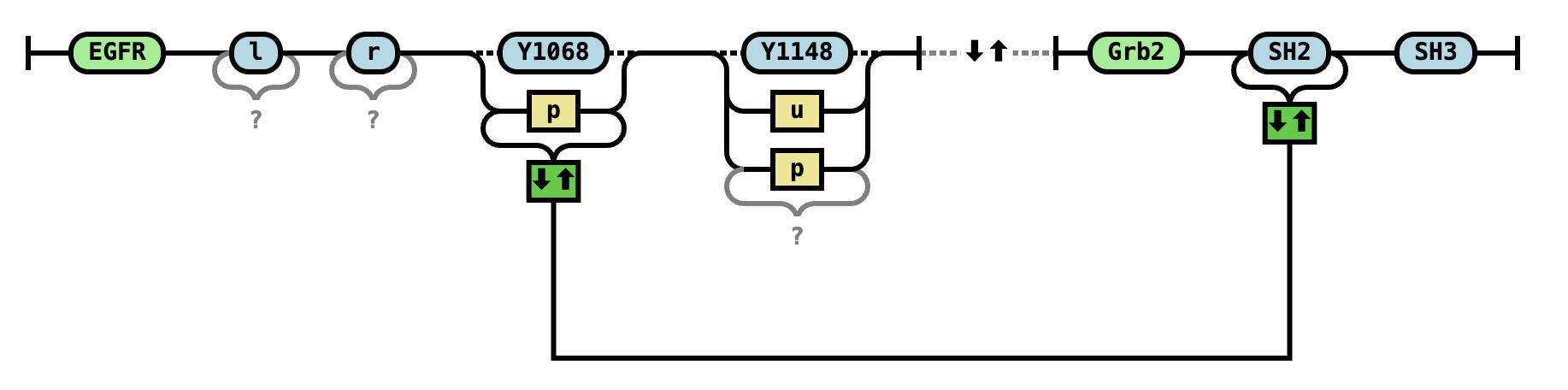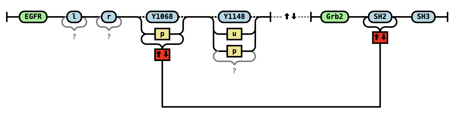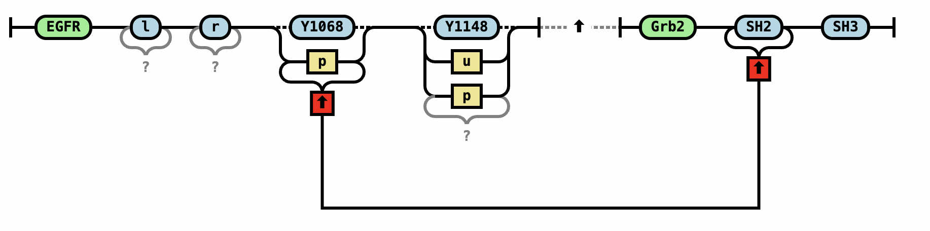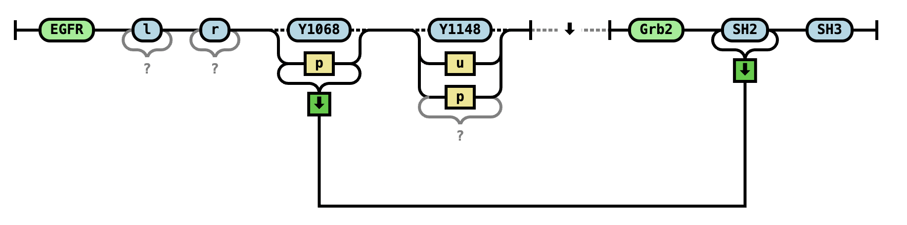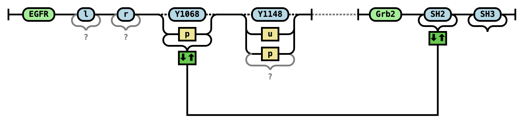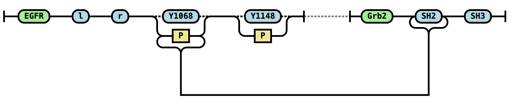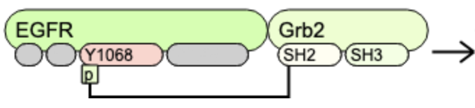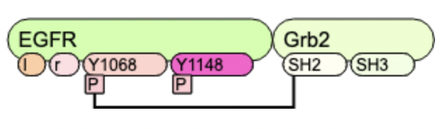 EGFR(l,r,Y1068~u,Y1148~u) EGFR(l,r,Y1068~P!1,Y1148~P).Grb2(SH2!1,SH3) |