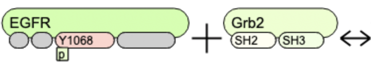 EGFR(Y1068~p)+Grb2(SH2,SH3) <-> EGFR(Y1068~p!1).Grb2(SH2!1,SH3) EGFR(Y1068~p!1).Grb2(SH2!1,SH3) <-> EGFR(Y1068~p)+Grb2(SH2,SH3) EGFR(Y1068~p).Grb2(SH2,SH3!+) <-> EGFR(Y1068~p!1).Grb2(SH2!1,SH3!+) |
